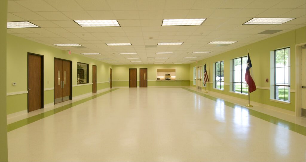 A 6,000 sq. ft. Senior Citizen’s community center complete with a 1,980 sq. ft. meeting room, two 850 sq. ft. game rooms, and a spacious full kitchen and serving line. The building was conceived and designed to give the senior citizens of Katy a beautiful and comfortable building for their daily and annual gatherings.