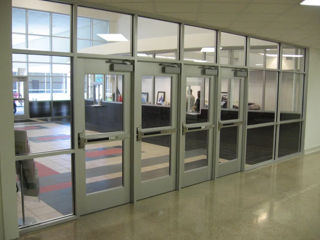 This project consisted of major summer renovations to the high school and field house, as well as a 3,500 sf addition to the field house. A brand new front entrance was built to help better secure the building and direct visitors in the right direction. The administration area and both locker rooms underwent a major transformation as the space was updated and made more functional for the growing population of students. Renovations to the main campus throughout the entire building included new ceiling grid and tile, fresh coat of paint and the replacement of exterior window glazing.