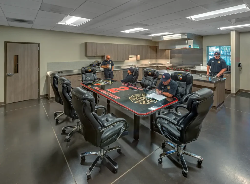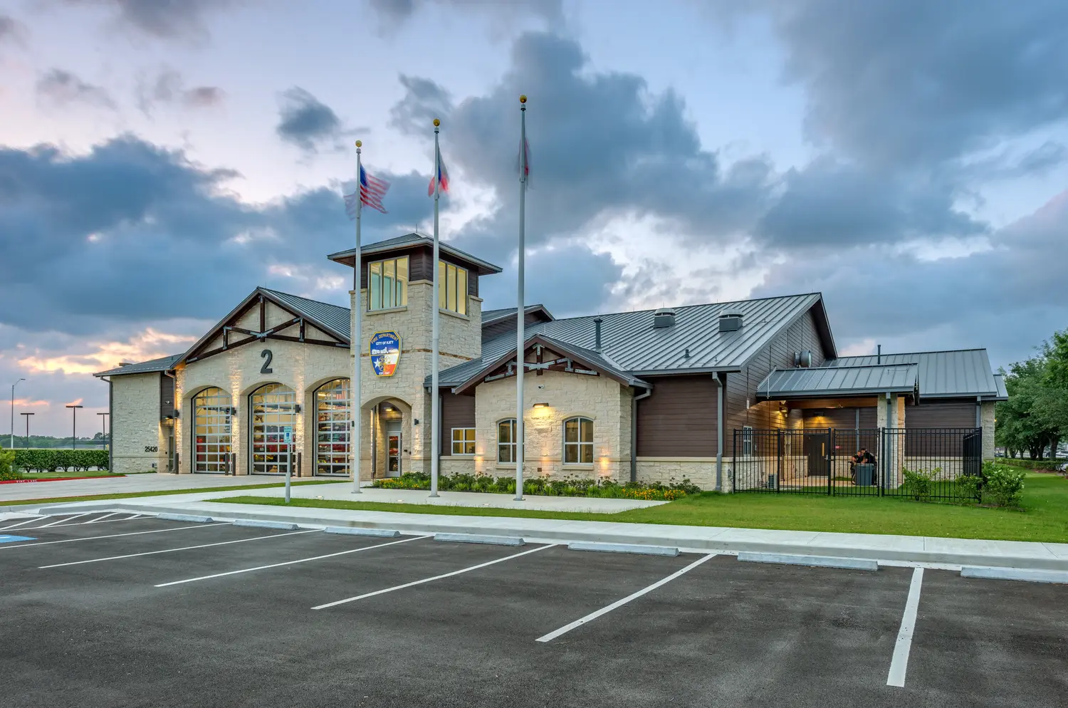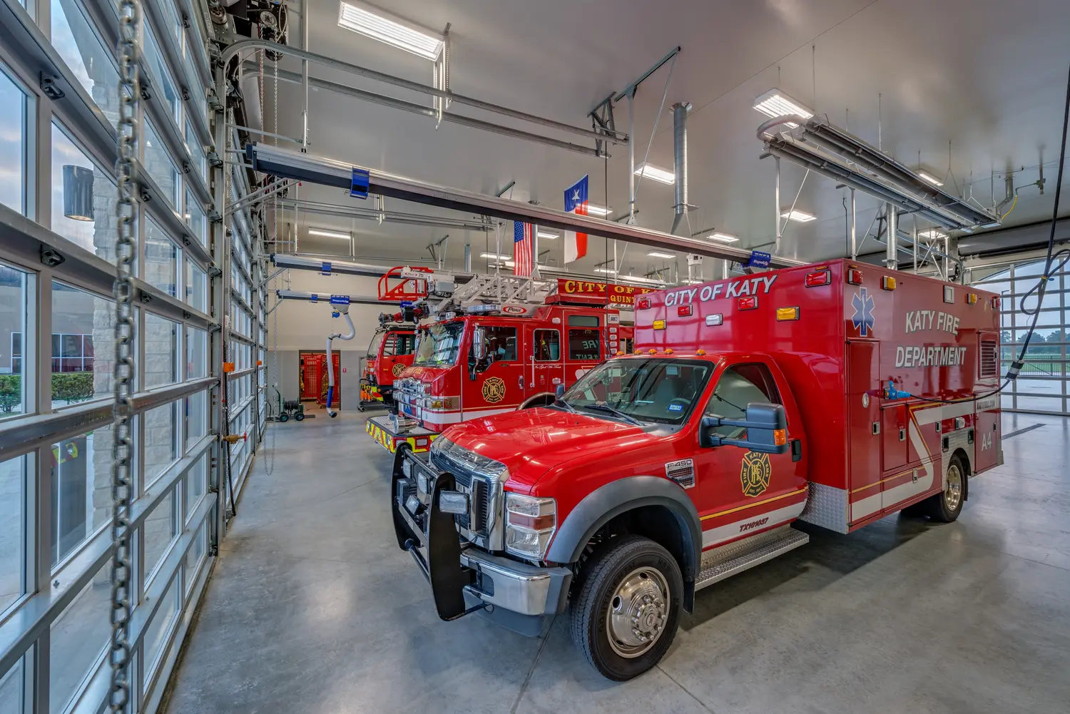 Katy Fire Station No. 2 was awarded to Bass Construction in 2017 and ground was broken in December of that same year. The brand new fire station is fully equipped with a three engine garage with an abundance of storage. The fire station is also designed for the comfort of the Katy firefighters, with a new kitchen and lounge.