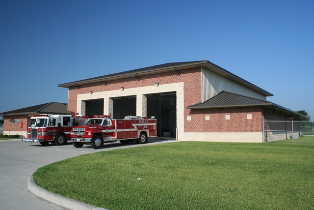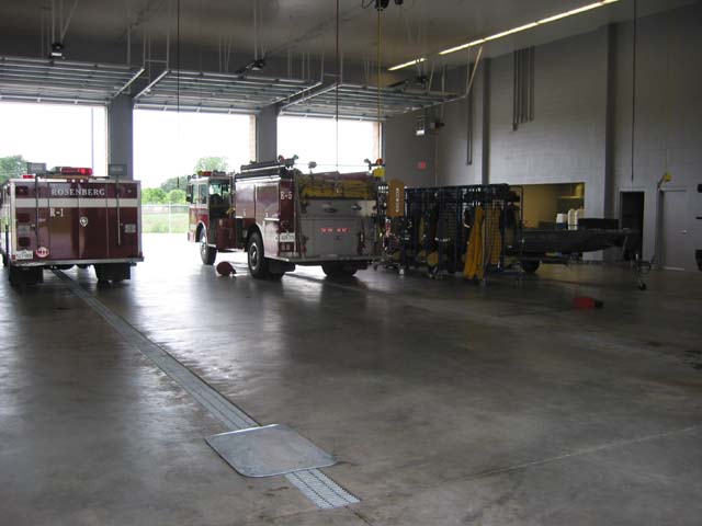 The building consists of three (3) truck bays, living quarters, kitchen, utility, restrooms, den and offices. The truck bay building was all masonry block walls with brick and stone veneer, while the heated area was metal stud and truss framing with brick and stone veneer. The roof was a 16″ standing seam metal roof with gutters and downspouts tied into underground drainage.